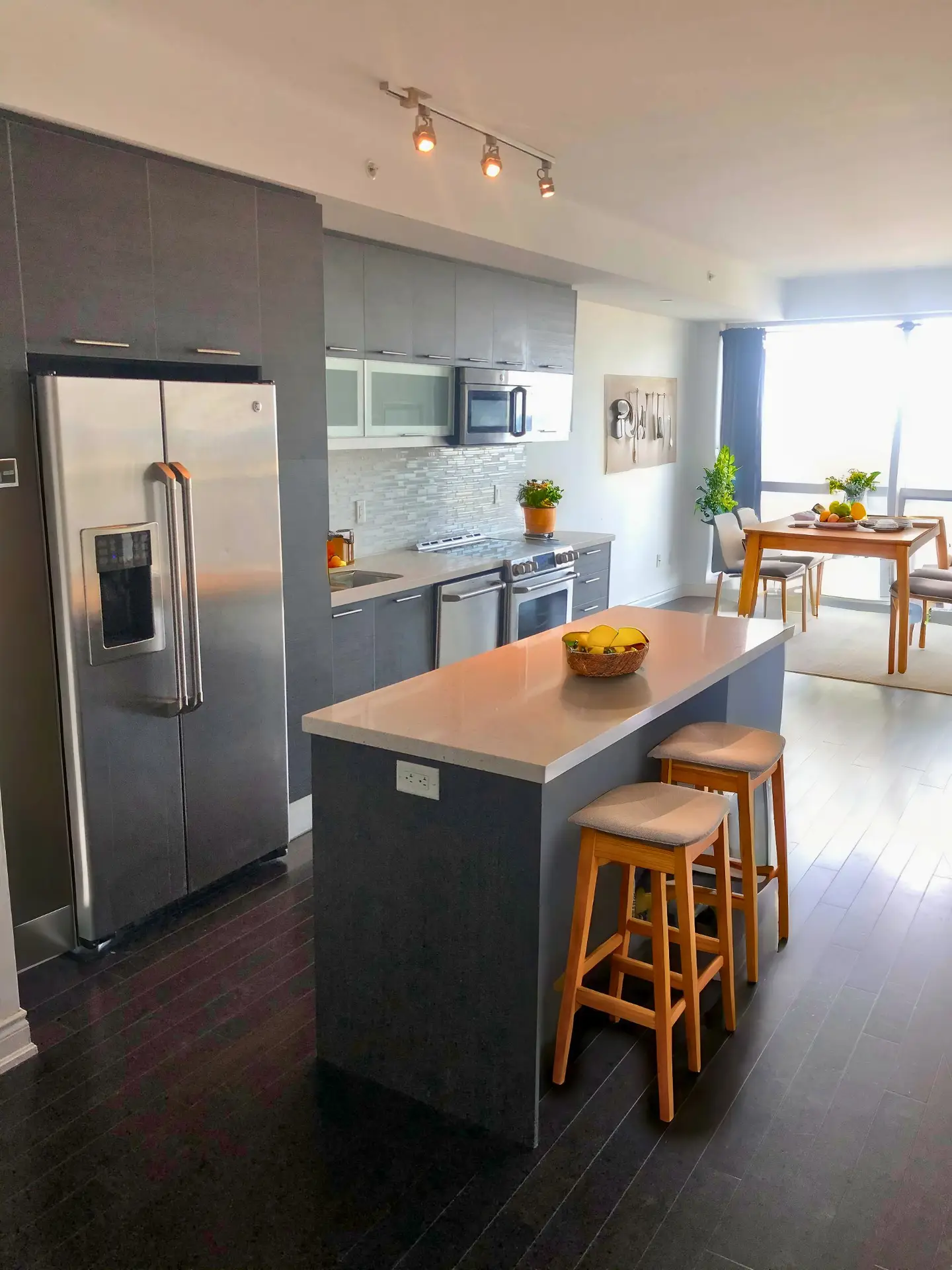 Featuring high-end stainless steel appliances, quartz countertops, and a centre island ideal for entertaining.