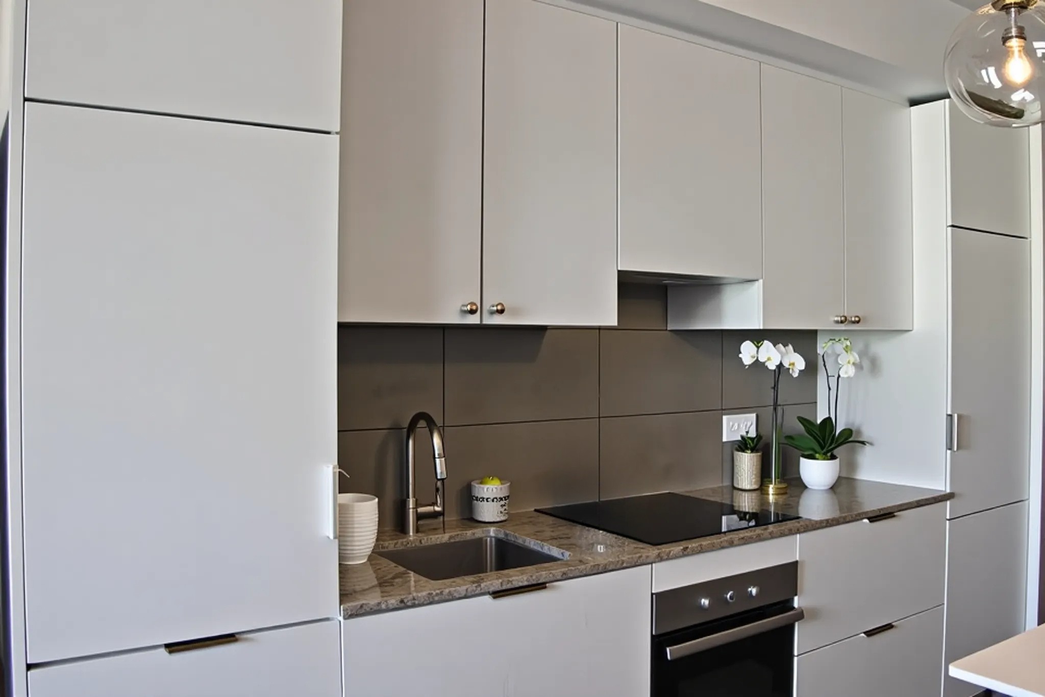 Savour a premium cooking experience with top-tier integrated appliances and a streamlined island that functions as a dining spot, workspace, or gathering point.