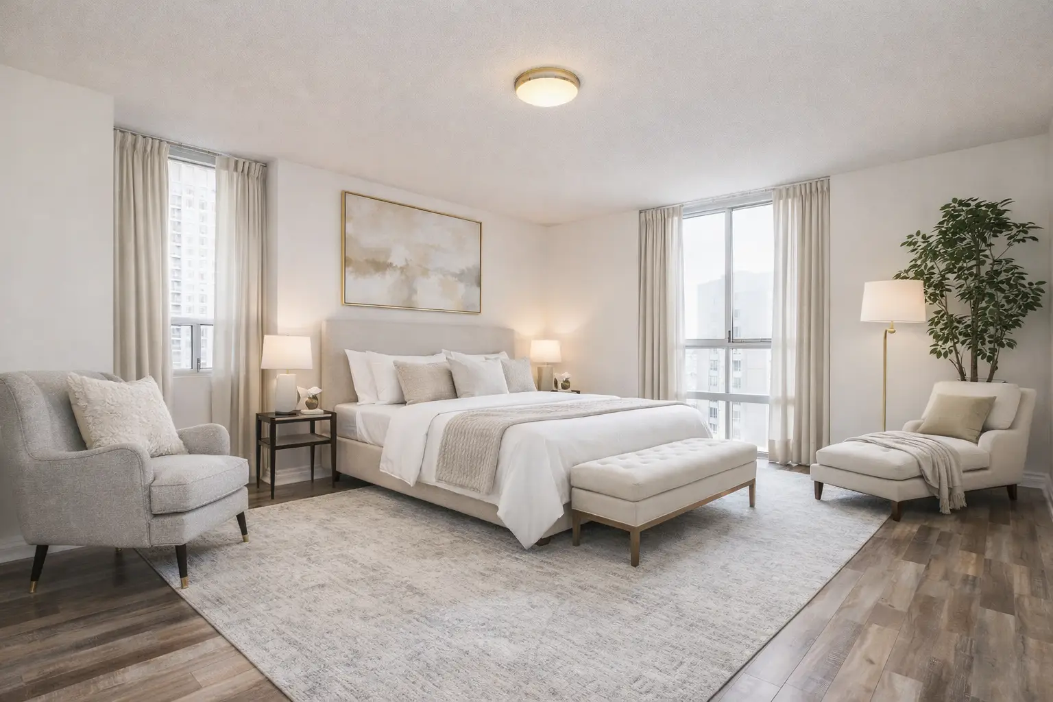 Enjoy a true house-like lifestyle in this meticulously maintained residence offering almost 1,700 sq ft of beautifully designed living space. The bright, open, and flexible floor plan features three exposures, stunning flooring throughout, and an abundance of natural light, with the living and dining areas enhanced by expansive windows and gorgeous views of Lake Ontario.